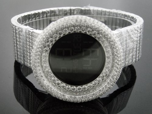 Mens 50mm Techno Com Kc Full Case & Band White Cz Watch - This is a Brand New in Box, Techno Com clock. Designed and manufactured by KC. A beautiful custom bezel and also Cz full band. Full case and band made with high quality CZ. The highest quality and craftsmanship of the KC is very clear in this clock. Face Width-50 mm - The Clock is new. Solid stainless steel case. Stainless steel band with a full face-cz black. Japanese chronograph movement - has several time zones -Digital/analog-Illuminating hands-crystal scratch resistant. List Price - $ 5,500 Our Price - $ 799.99 - The clock comes in its original Techno Com box and warranty card., Mens 50mm Techno Com Kc Full Case & Band White Cz Watch.