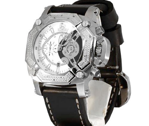 Techno Master Watches Mens Diamond Watch 0.25ct. - TM-2134G - Only Techno Master Watches! This Mens Diamond Watch by Techno Master features a stainless steel case with 0.20 carats of diamonds masterfully around the bezel, two chronograph subdials, date display at 6 clock and a polished black leather strap with white contrast stitching. The dial is paved with sparkling cubic zirconia stones. This unique Techno Master Diamond clock comes with a nice Japanese-made quartz movement and is conveniently water-resistant., Techno Master Watches Mens Diamond Watch 0.25ct. - TM-2134G.