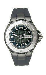 TechnoMarine Women's 110026 Cruise Ceramic 3 Hands Black Dial Watch - Diving watch, Precision Swiss quartz movement, Polished silver-tone hands with luminous accents and sweep seconds, Polished silver-tone baton markers, White square form indexes and indexes surrounding minute track, dual panel analog day and date display at three Applied hours, black dial with textured wave pattern in the center and polished silver-tone logo applique at twelve clock, black silicone strap with polished silver-tone stainless steel buckle, single polished silver-tone stainless steel bezel with engraved markers stick and raised indices Gleaming black ceramic round case, Textured steel crown back with logo, stainless steel screw, sapphire crystal, 200 meters/660 feet water resistant, TechnoMarine Women's 110026 Cruise Ceramic 3 Hands Black Dial Watch.